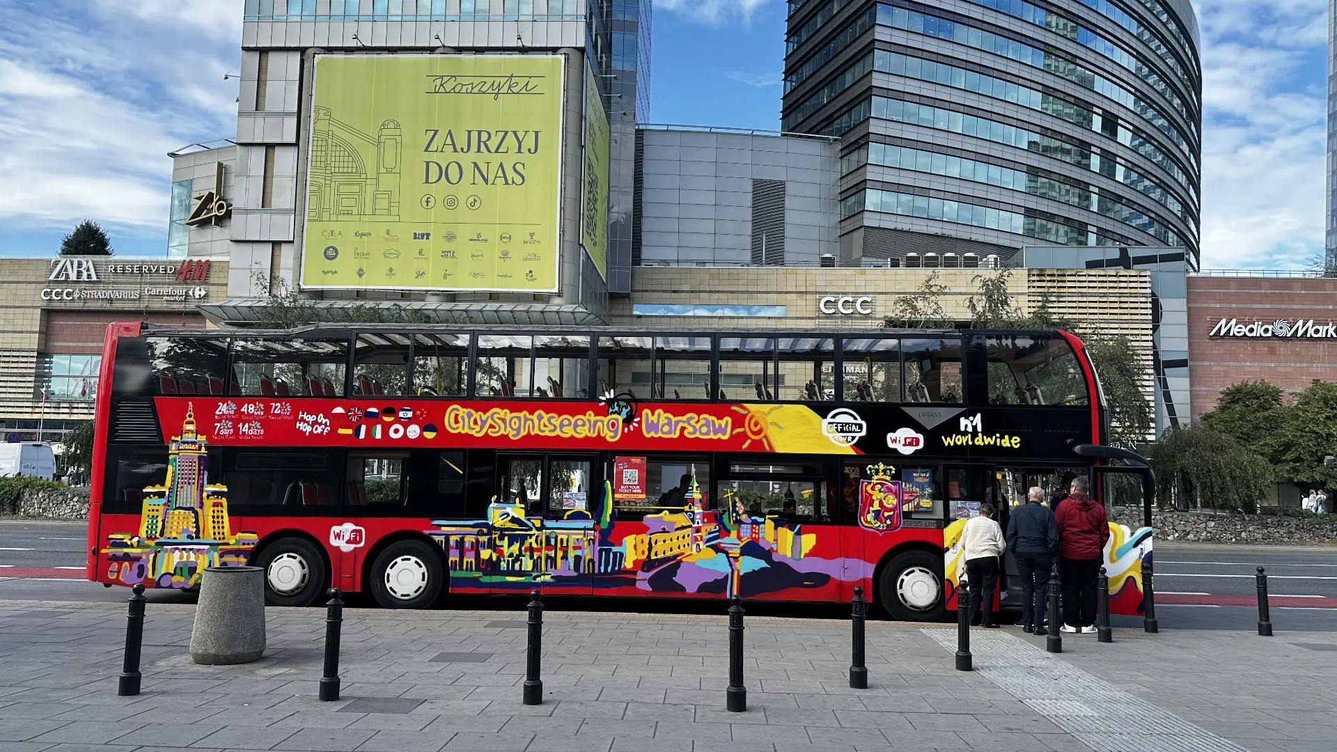 Two routes, two faces of Warsaw. Choose the Red Route through the historic center or the Blue Route through the modern metropolis. One ticket — both routes.